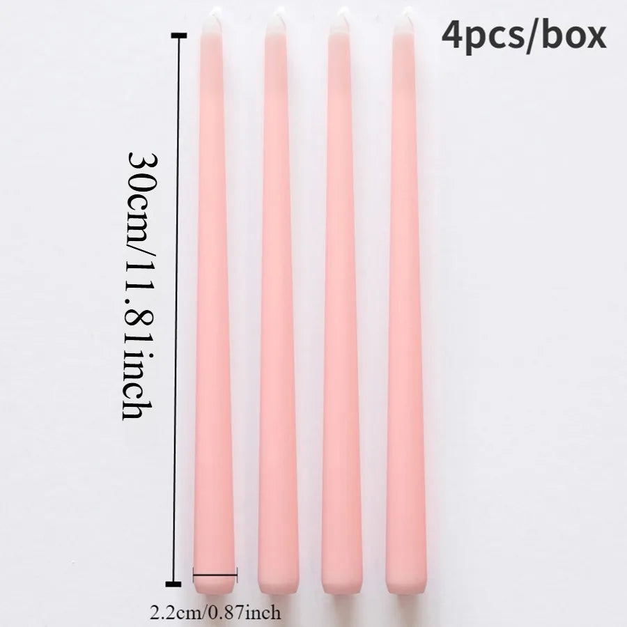 Créez une ambiance chaleureuse et élégante avec cet ensemble de 4 bougies coniques. Leur teinte délicate et leur flamme stable apportent une touche romantique à votre décoration de table, parfaite pour un dîner, un anniversaire ou un mariage.