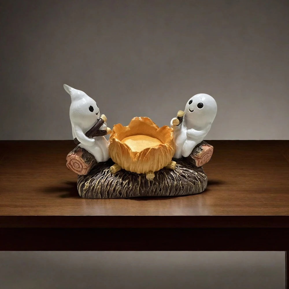 Ajoutez une touche effrayante et amusante à votre déco avec ce bougeoir Halloween fantôme. Son design original avec deux petits fantômes assis autour d’un feu crée une ambiance unique et chaleureuse, parfaite pour Halloween ou vos soirées à thème.